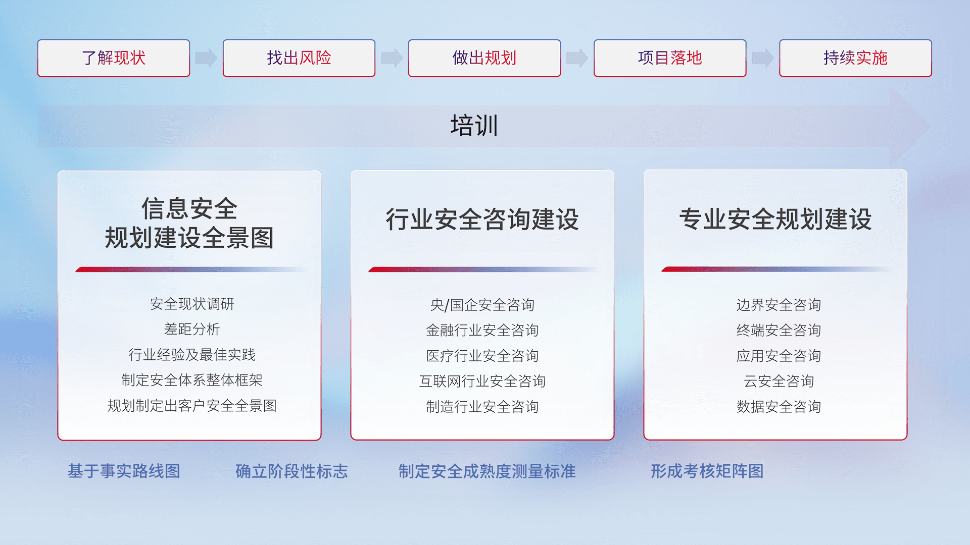 梳理客户信息安全现状调研、、差距分析结果,,,结合行业先进经验及最佳实践,,,,制订客户的信息安全管控体系总结架构,,,,最终形成一个完整的客户信息安全规划与建设的全景图。。。