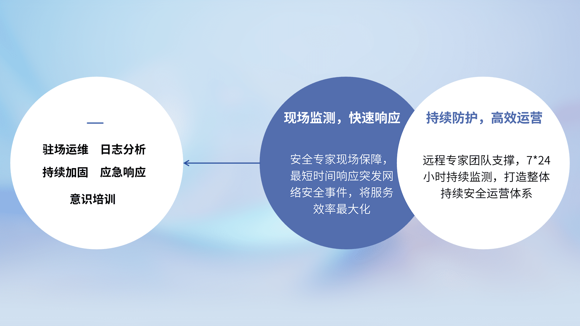 针对客户行业特性,,,提供专属的一站式安全管理服务,,,,帮助客户全面感知网络空间威胁,,通过安全专家的线上、、、线下防护支持,,实现风险闭环,,,,将安全保障常态化,,,,为客户打造常态化安全运维运营服务。。。